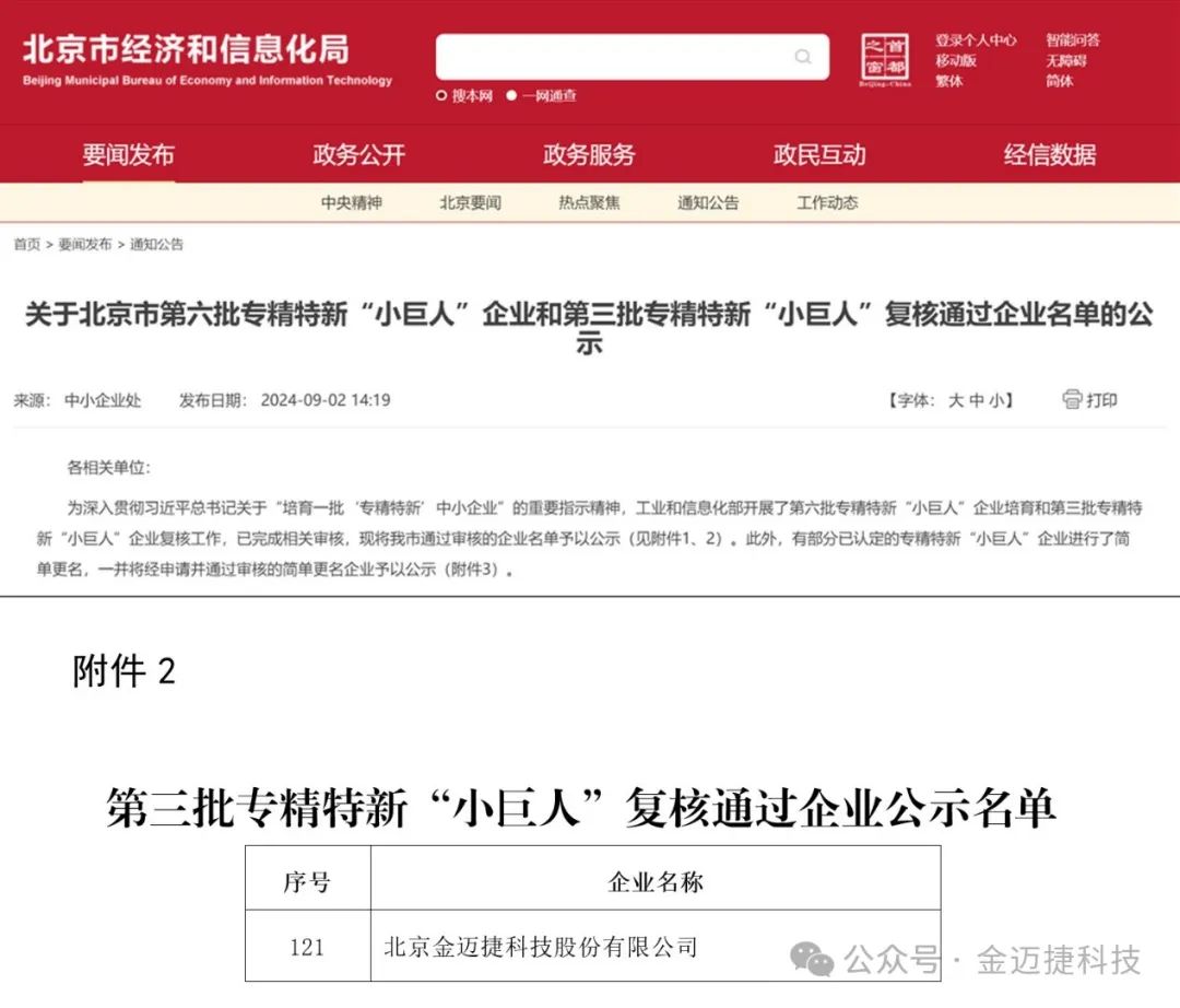 近日,國(guó)家工業(yè)和信息化部開展了第三批專精特新“小巨人”企業(yè)復(fù)核和第六批專精特新“小巨人”企業(yè)培育工作。金邁捷于2021年榮獲國(guó)家專精特新“小巨人”企業(yè)榮譽(yù)稱號(hào),三年來(lái)憑借卓越的創(chuàng)新實(shí)力和穩(wěn)健的發(fā)展態(tài)勢(shì),成功通過復(fù)核,再次榮獲國(guó)家級(jí)專精特新“小巨人”企業(yè)稱號(hào)。
