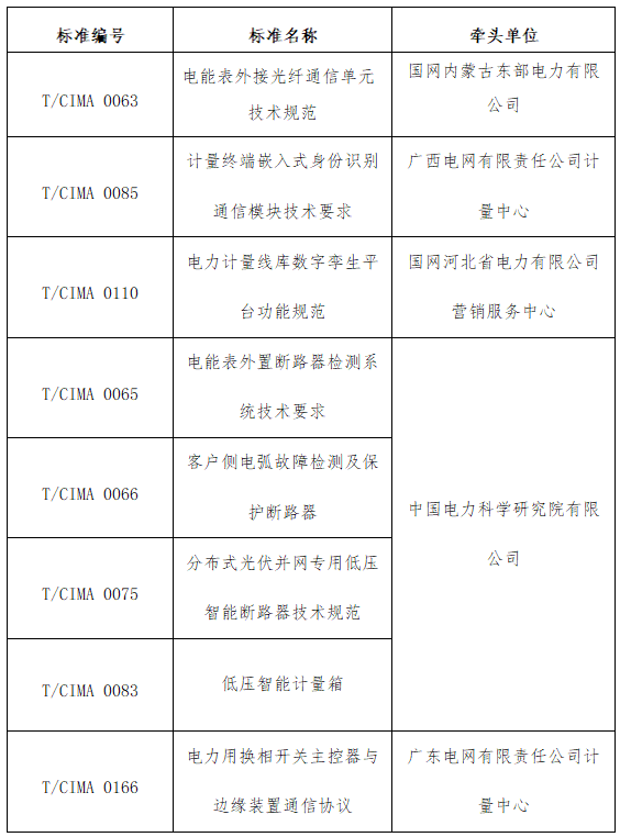《電能表外接光纖通信單元技術規范》等8項團體標準送