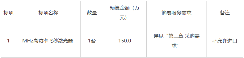 浙江大學MHz高功率飛秒激光器公開招標公告
