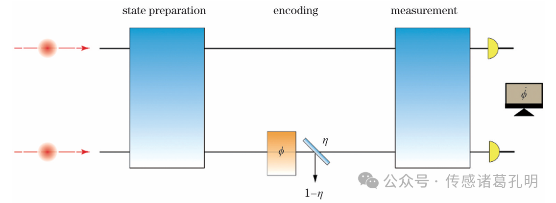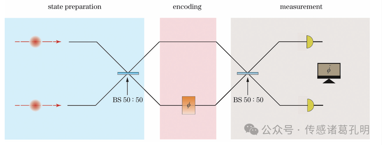 光學干涉儀是量子精密測量最典型的應用平臺。其中馬赫-曾德爾干涉儀(MZI) 成為研究相位測量的標準模型(圖2)。