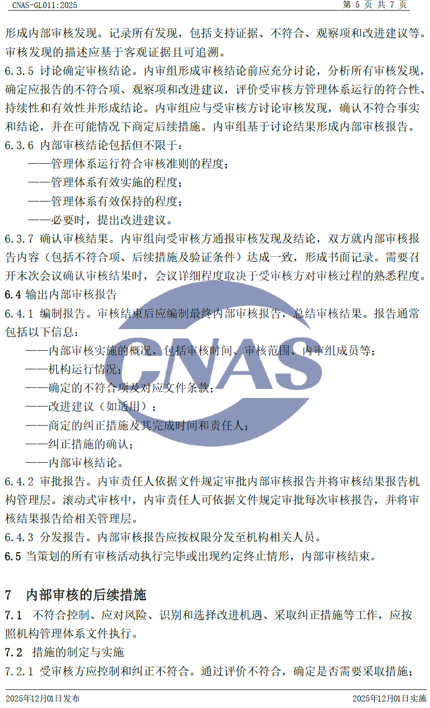CNAS-GL011:2025 《實(shí)驗(yàn)室和檢驗(yàn)機(jī)構(gòu)內(nèi)部審核指南》與CNAS-GL011:2018相比,除結(jié)構(gòu)調(diào)整和編輯性改動(dòng)外,主要技術(shù)變化如下: